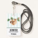 Benennen Sie Abzeichen mit einem zauberhaften Faultier, das von einem Baumzweig auf dem Kopf hängt. Der Baumzweig ist mit tropischen Blätter und Beeren dekoriert. Set auf einem hellgrün-weiß gestreiften Hintergrund.