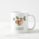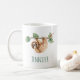 Eine Tasse mit einem bezaubernden Faultier, der von einem Baumzweig auf den Kopf hängt. Der Baumzweig ist mit tropischen Blätter und Beeren dekoriert.