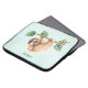 Die Laptop-Hülle mit einem zauberhaften Faultier, der von einem Baumzweig auf den Kopf hängt. Der Baumzweig ist mit tropischen Blätter und Beeren dekoriert. Set auf hellgrünem Hintergrund.