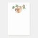 Klebrige Noten mit einem zauberhaften Faultier, der von einem Baumzweig auf dem Kopf hängt. Der Baumzweig ist mit tropischen Blätter und Beeren dekoriert.