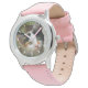 Kinderuhr aus Edelstahl mit rosa Lederarmband