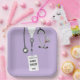 Kreative Teller von Schulabschlussfeiern mit Lavendel-Klinikschemen. Bearbeiten Sie Text, um den Namen der Krankenschwester hinzuzufügen.