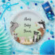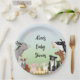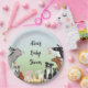 Feiern Sie eine Babydusche, Taufe, Taufe oder Namensfeier im Stil dieser niedlichen Bauernfreunde mit einem Esel, einer Gans, einer Henne und ihren Küken, einer Babyziege, einem Ferkel, einem Kaninchen, zwei Lämmern, einer Grenzkollie, einer schwarzen Katze und einer Kuh und ihrem Kalb. Der Text kann personalisiert sein, wie Sie wollen.