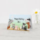 Auf dem Bauernhof sind alle Tiere für einen besonderen Geburtstag sehr aufgeregt! Diese niedliche personalisierte Karte enthält einen Esel, eine Gans, eine Henne und ihre Küken, eine Babyziege, ein Ferkel, ein Kaninchen, zwei Lämmer, eine Grenzkollie, eine schwarze Katze und eine Kuh und ihr Kalb.