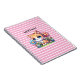 Ein hübsches Kätzchen sitzt in einem Stück blaue und rosa Blume und weiß gestrichene Polka Punkte personalisiert Notizbuch.