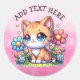 Niedliche Orange Kitty Cat bei Blume Personalisier Runder Aufkleber