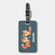 Personalisierte Gepäckmarke mit einer grafischen Abbildung von 2 orangefarbenen Füchsen, die niedlich und glücklich aussehen. Dunkelgrüner Hintergrund.
