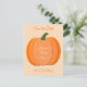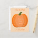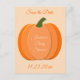 Diese phantastische Save the Date Babydusche-Postkarte bietet ein digitales Kunstbild eines niedlichen orangefarbenen Kürbis mit 3 verschiedenen Orangenfarben, die sich in Richtung Kürbisrand immer dunkler werden. An der Oberseite ist ein grüner Stiel angebracht. Das Design ist geschlechtsneutral und eignet sich besonders zum Feiern eines kleinen Jungen oder Mädchens, besonders im Erntedank. Es gibt einen eigenen Text, sodass Sie das Datum der Baby-Dusche einschließen und das Design nach Belieben personalisieren können.