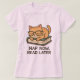 Eine hübsche, von Hand gezeichnet Illustration einer lächelnden Orangenkatze, die eine farbenfrohe Blume trägt, perfekt für T - Shirt von Mädchen. Dieses süße und spielerische Design verleiht jedem Outfit eine Touch von Kult und Charme.
