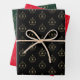 Niedliche Ornamente aus dunkelgrünem Weihnachtsgol Geschenkpapier Set