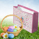 Hübsches niedliches rosa und blaues Grafikdesign "Happy Oaster" Eier auf rosa und weiß gesprenkeltem Hintergrund. Diese stilvolle und mädchenhafte Ostertasche wird Ihren Osterfeiertagen eine festliche Touch verleihen.