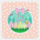 Niedliche Ostereierjagd und farbenfrohe Schmetterl Quadratischer Aufkleber