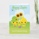 Niedliche Osterchicks - Familiengeachtete Personalisierte Karte - auf dem Hintergrund eines grünen Feldes und eines blauen Himmels, der das Bild wirklich Pop macht - eine Urlaubskarte aus Ricaso, der Sie Ihren eigenen Text hinzufügen können - Mami, Papa und Baby Küken.