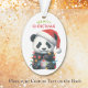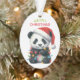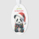 Dies ist ein niedliches Weihnachtsschmuck für Eltern oder Großeltern, um einem Kind zu geben, aber es kann leicht als Geschenk für jedermann angepasst werden. Die Vorderseite des Ornaments hat ein Bild eines bezaubernden Panda-Bären mit einer Weihnachtsmannmütze. Er ist in eine Reihe farbenfroher Urlaubsleuchten eingewickelt. Im grünen und roten Text steht "MERRY CHRISTMAS". Auf der Rückseite des Ornaments befindet sich Ihr eigener Text, der durch einen kleinen Bonbons und ein heiliges Bouquet getrennt ist. Ändern Sie den Text einfach zu allem, was Sie wollen!