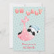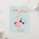 Hier ist eine adorable Duscheinladung für Mädchen mit einem Panda für Babys, das in einem Herzmuster rosa Decke absteigt, die von einem Button für Herzsicherheit aufgehalten wird. Text in stilisierten Cookie-Typ rosa und weiße Muster sagt oben "OH BABY", und dunkelrosa Text am unteren Rand sagt: "Bitte schließen Sie uns an, um CELEBRATE!" Bild und Text werden auf einem subtilen, blauen Sternhintergrund platziert. Die Rückseite der Einladung hat viel Platz für Ihren eigenen Text, und wiederholt den blauen Sternhintergrund, mit einem zusätzlichen Bild einer Wolke mit Sternanhängen.