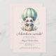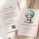 Diese niedliche Babydusche-Einladung enthält einen süßen Aquarellpanda in einem Minzgrün-Heißluftballon, über dem in der Holzkohleschrift "Adventure erwartet!" steht. Personalisieren Sie den Text mit dem Namen der Mama-to-be im Skript und die Details in Sans Serif Schriftart auf einem hellblütigen rosa Hintergrund. Auf der Rückseite finden Sie Platz für eine Windelverlosung, Bücher für das Baby und Registrierungsdetails sowie einen komfortablen QR-Code, den Gäste scannen können, um die Registrierung zu besuchen. Ideal für eine Babydusche eines Mädchens.