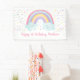 Dieser niedliche Geburtstag Banner zeigt unseren handgezeichneten Regenbogen und Wolken in Pastellfarben.
