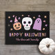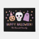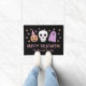 Diese super lustige Halloween Türmatte ist perfekt für die Herbstsaison und für Trick-oder-Wächter! Es verfügt über einen handgezeichneten Schädel, Geist, Jack-oder-Laternen-Kürbis (mit einem Hexenhut tragen), Sterne, sowie moderne Typografie, Lesen "Happy Halloween!". Eine Textvorlage ist für eine einfache Personalisierung vorgesehen. Die Farbgebung ist pastellrosa, lila und pfirsichfarben. *Kunstwerk von Orabella Prints.