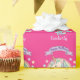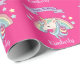 Dieses niedliche und farbenfrohe Verpackungspapier zeichnet sich durch eine wunderschöne Abbildung eines einfarbigen und pastellfarbenen Regenbogens auf einem heißen rosa Hintergrund aus. Kleine Sterne in passenden Farben umgeben den Regenbogen. Über dem Einhorn wird ein Muster-Happy Birthday-Banner gedruckt, und ein Beispielname wird unten in einem eleganten lila Script-Schriftart gedruckt. Sie können die Geschenkpackung so gestalten, dass sie Ihren eigenen individuelle Name oder Text enthält.