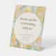 Niedlich Modernes Ästhetisches Gelb, Gelb, Weiß und Rosa Pastellfarben Hübsches Abstraktes Swirt Custom Brautparty Danke Pedestal Sign