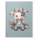 Niedliche Pastell Babykuh in Overalls mit Blume Notizblock