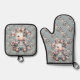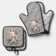 Niedliche Pastell Babykuh in Overalls mit Blume Ofenhandschuh & Topflappen-Set