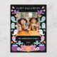Set für Ihr charmantes, sprichwörtliches Soirée mit Einladungen mit unwiderstehlich niedlichen Geistern, die vor einem schwarzen Hintergrund schwebend und eine reizvolle Halloween-Feier versprechen