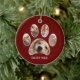 Niedliche Paw Print Pet Name Jahr FotoCollage Rot Keramik Ornament