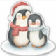Charmantes festliches Aufkleber-Design, das einen fröhlichen Moment zwischen einem Mutterpinguin und ihren bezaubernden Nachkommen zeigt und gemeinsam Fröhlichkeit und Wärme verbreitet.