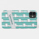 Diese niedliche Telefonzelle ist toll für dich Junge! Dieses Design zeichnet sich durch ein Muster niedlicher, flauschiger weißer Lahmen aus, die weiße Krawatten tragen. Es gibt einen grauen Seitenstreifen mit Ihrem Namen personalisiert am unteren Ende dieses Handy-Gehäuse. Im Hintergrund ist ein Streifen weiß und aqua blau.