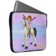Hübsche personalisierte Laptophülse mit einer entzückenden kleines Mädchen Poserpuppe mit Fliegenzöpfen/-borten auf einem niedlichen glücklichen Pferd/einem Pony auf einem hübschen, bunten rosa und blauen magischen Hintergrund mit funkelnden Sternen. Kinder sind Liebe diese glücklichen Charaktere - ein perfektes Geschenk für Mädchen gewillt! Personifizieren Sie oder entfernen Sie den Text. Ein anderes cooles Produkt von den Groovy Grafiken.