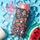Niedliche Pilze aus rotem Blumen in grüner Dekorat Selters Dosenkühler