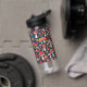 Niedliche Pilze aus rotem Blumen in grüner Dekorat Trinkflasche
