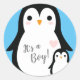 Niedliche Pinguin Baby Dusche Blue Boy Runder Aufkleber