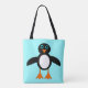Dieser phantastische Totbeutel hat einen niedlichen Pinguincharakter mit weißem Bauch, großen blauen Augen mit schwarzen Schülern und niedlich orangen Füßen und Schnabel. Dieser charmante kleine Wintervogel wird Kinder und Erwachsene begeistern. Der Pinguin sitzt auf einem eisblauen Hintergrund, um ihn an seine kühle arktische Zuhause zu erinnern.