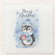 Eine bezaubernde Winter-Illustration eines zauberhaften Pinguins mit einem blau gestreiften Hut und Schal, der ein gemütliches und festliches Ambiente bringt. Die sanften Schneeflocken und sanften blauen Farbtöne im Hintergrund schaffen eine zauberhafte Winteratmosphäre. Ideal für Weihnachtskarten, Plakate, Aufkleber und saisonale Handwerkskunst!