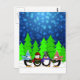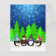 Niedliche Pinguine mit festlichen Snowflake-Design-Skarven und Hats singende Carolen auf Schneeweihnachtliche Illustration Zeichnend Postkarte