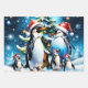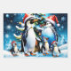 Niedliche Pinguine im fröhlichen Stil des Cartoon, die alle festliche Weihnachtsmannmützen tragen. Sie stehen um einen wunderschön dekorierten Weihnachtsbaum, der mit bunten Ornamenten in verschiedenen Formen und Größen dekoriert ist. Ein großer goldener Stern leuchtet oben auf dem Baum und verleiht dem ganzen Bild ein festliches Glühen. Dieses Design erfasst das Wesen der Weihnachtszeit spielerisch und vermittelt ein Gefühl von Wärme, Freude und Gemeinschaft inmitten einer winterlichen Landschaft.