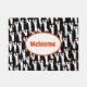 Ein süßes und naives Muster mit Pinguinen aus bezauberndem Cartoon, die alle in ihrem formalen Besten mit dem Wort Willkommen in einem passenden Orangenspaß-Schriftart gekleidet sind. #welcomemat #welcome #penguins #whimsy