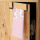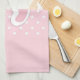 Küchentücher mit einem hübschen Bild von Pink Girl Fußabdrücken mit einer schweren weißen Kontur. Weiße Polka zeigt auf einem rosa Hintergrund hinter der Abbildung.
