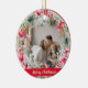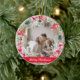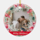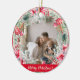 Mit diesem runden Foto-Ornament verwandeln Sie eine wertvolle Erinnerung in einen Urlaubssaft. Ihr Bild wird von einer festlichen Poinsettia, roten Glocken und Ornamenten, Goldschneeflocke und heiligen Kranz gerahmt, während der Hintergrund eine originelle Urlaubsbotschaft enthält, die Sie nach Belieben oder nach Ihren Wünschen anpassen können. Ein perfekter Weg, um Ihren Baum oder Geschenk ein bedeutendes Memento an Freunde und Familie zu personalisieren.