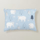 Krude Eisbären umgeben von Weihnachtsbäumen und Schneeflocken vor eisblauem Hintergrund