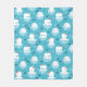 Eine Decke mit einem niedlichen Weihnachtsmuster mit Eisbären, die auf schwimmendem Eis mit roten Weihnachtsmannmützen stehend sind. Kleine Iglus, Schneeflocken und Fische umgeben diese bezaubernden Eisbären, die auf dem Wasser abkühlen. Hellblauer Hintergrund. Niedliche und skurrile Urlaubsplanung.