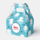 Kleine 4 Zoll x 2,5 Zoll Gunst Box mit einem niedlichen Weihnachtsmuster mit Eisbären, die auf schwimmendem Eis mit roten Weihnachtsmannmützen stehend sind. Kleine Iglus, Schneeflocken und Fische umgeben diese bezaubernden Eisbären, die auf dem Wasser abkühlen. Hellblauer Hintergrund. Niedliche und skurrile Urlaubsplanung.