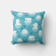 Ein Kissen mit einem niedlichen Weihnachtsmuster mit Eisbären, die auf schwimmendem Eis mit roten Weihnachtsmannmützen stehend sind. Kleine Iglus, Schneeflocken und Fische umgeben diese bezaubernden Eisbären, die auf dem Wasser abkühlen. Hellblauer Hintergrund. Niedliche und skurrile Urlaubsplanung.