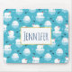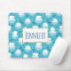 Mousepad mit niedlichem Weihnachtsmuster mit Eisbären, die auf schwimmendem Eis mit roten Weihnachtsmannmützen stehend sind. Kleine Iglus, Schneeflocken und Fische umgeben diese bezaubernden Eisbären, die auf dem Wasser abkühlen. Hellblauer Hintergrund. Niedliche und skurrile Urlaubsplanung.