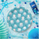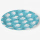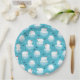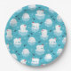 Papier Teller mit einem niedlichen Weihnachtsmuster mit Eisbären, die auf schwimmendem Eis mit roten Weihnachtsmannmützen stehend sind. Kleine Iglus, Schneeflocken und Fische umgeben diese bezaubernden Eisbären, die auf dem Wasser abkühlen. Hellblauer Hintergrund. Niedliche und skurrile Urlaubsplanung.