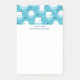 Sticky Noten mit einem niedlichen Weihnachtsmuster mit Eisbären, die auf schwimmendem Eis mit roten Weihnachtsmannmützen stehend sind. Kleine Iglus, Schneeflocken und Fische umgeben diese bezaubernden Eisbären, die auf dem Wasser abkühlen. Hellblauer Hintergrund. Niedliche und skurrile Urlaubsplanung.