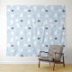 Krude Eisbären umgeben von Weihnachtsbäumen und Schneeflocken vor eisblauem Hintergrund