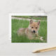 Postkarte mit einem bezaubernden Welpe vorne, Esskronen Stiele im Freien.